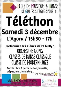 *** Samedi 3 décembre – de 15h30 à 17h – L’Agora, Guilers. Téléthon, carte blanche à L’EMDG. Entrée libre