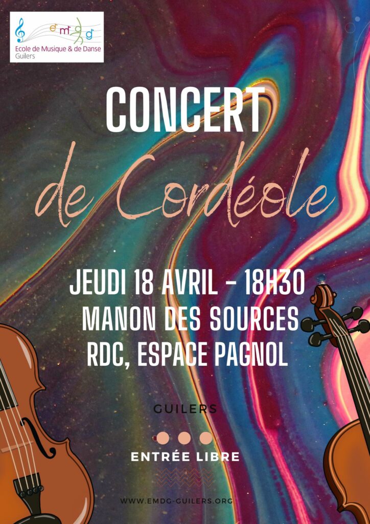 Audition des élèves de Cordéole, jeudi 18 avril à 18h30 à Manon des Sources. Direction : Michèle Morvan.