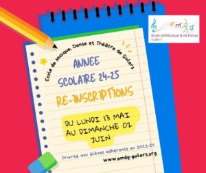Période de réinscriptions, avec priorité aux élèves de 2023-24, entre le 13 mai et le 02 juin 2024.