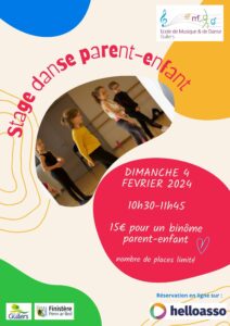 Une matinée de stage animée par Virginie Le Gloahec. Ouvert à un binôme parent-enfant. Enfant de 6 à 11 ans + 1 adulte de son choix. Aucune expérience de la danse requise ! Venez partager un moment en famille autour des grands fondamentaux de la danse. Échauffement et apprentissage d’une petite chorégraphie.