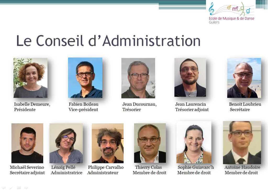 Suite à l’Assemblée Générale du 5 décembre 2023, le Conseil d’Administration bénévole de l’association est maintenant composé de :