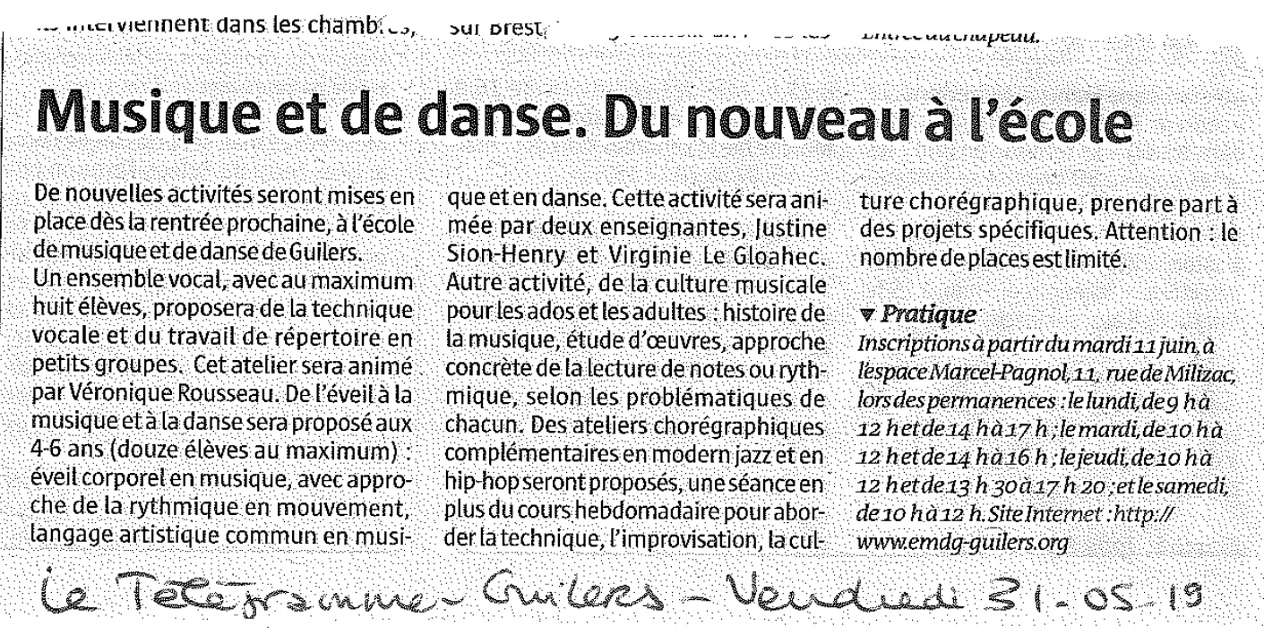 Du nouveau pour la rentrée 2019-20 – Le Telégramme – Mai 2019